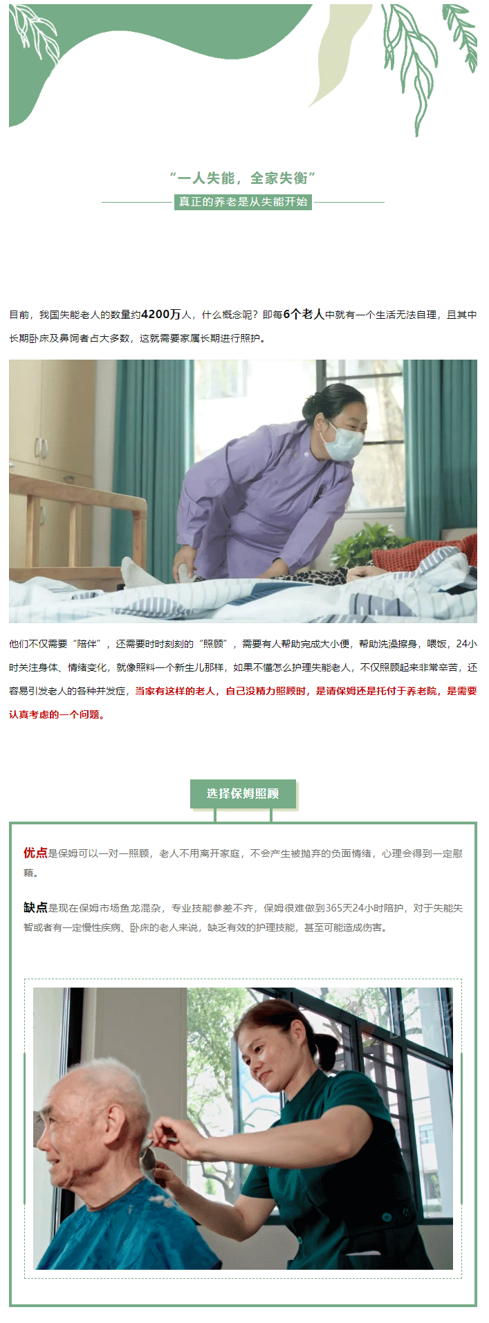 華遠康養(yǎng)|失能老人照護難題:保姆還是養(yǎng)老院?
